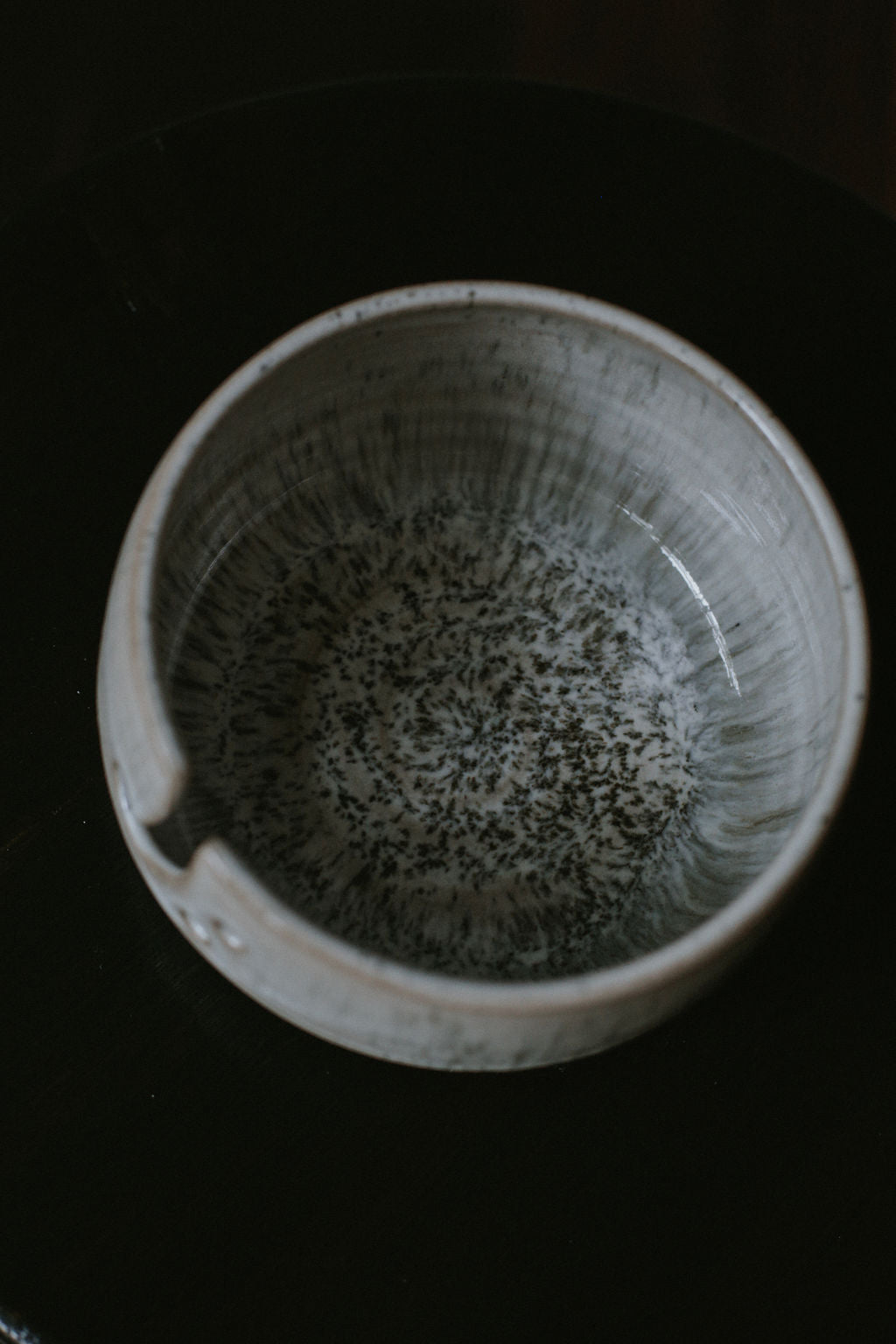 Handmade Ceramic Yarn Bowl | Stoneware Anthracite Gray | Glazed with Beige White and Black Speckles